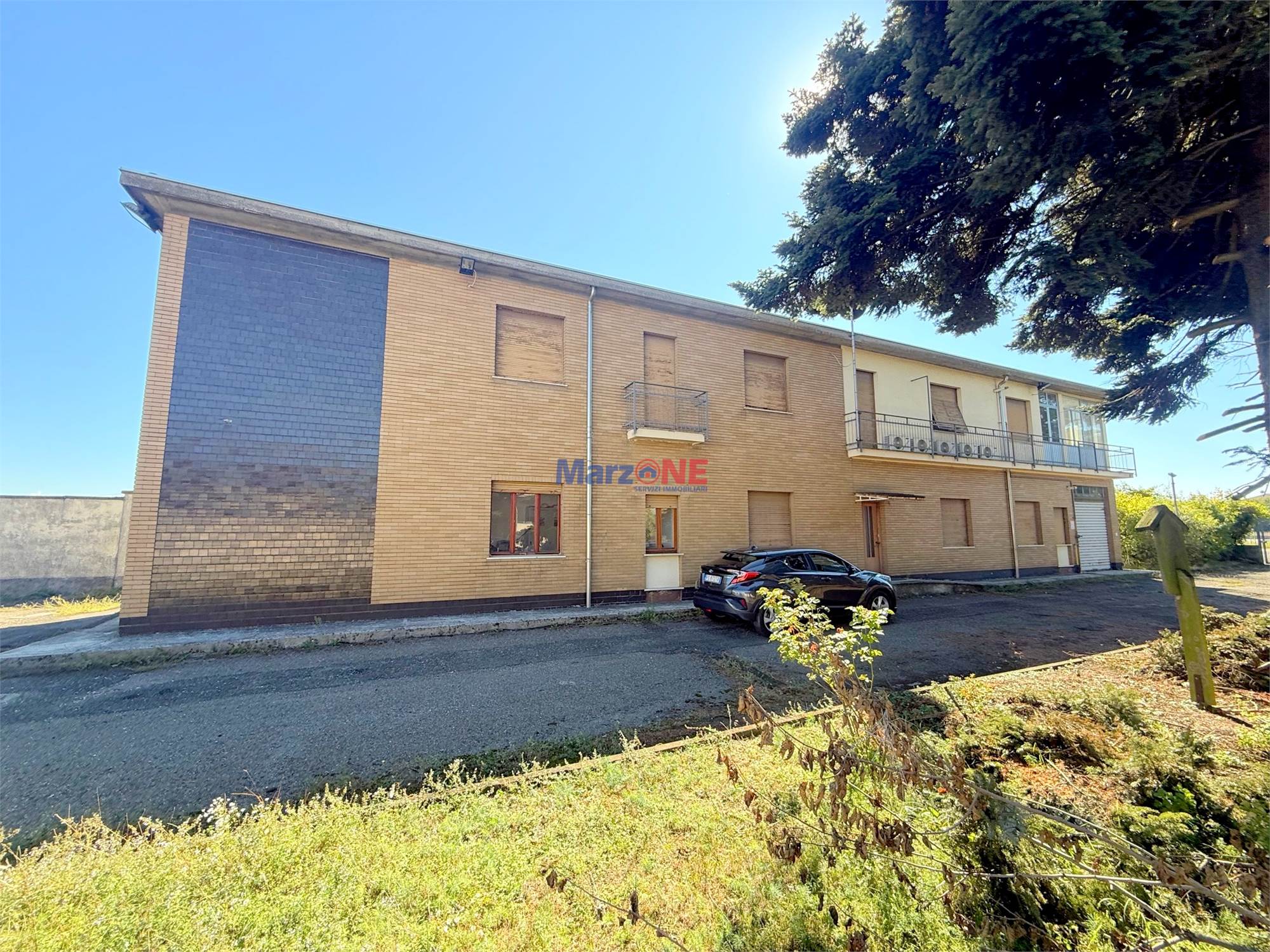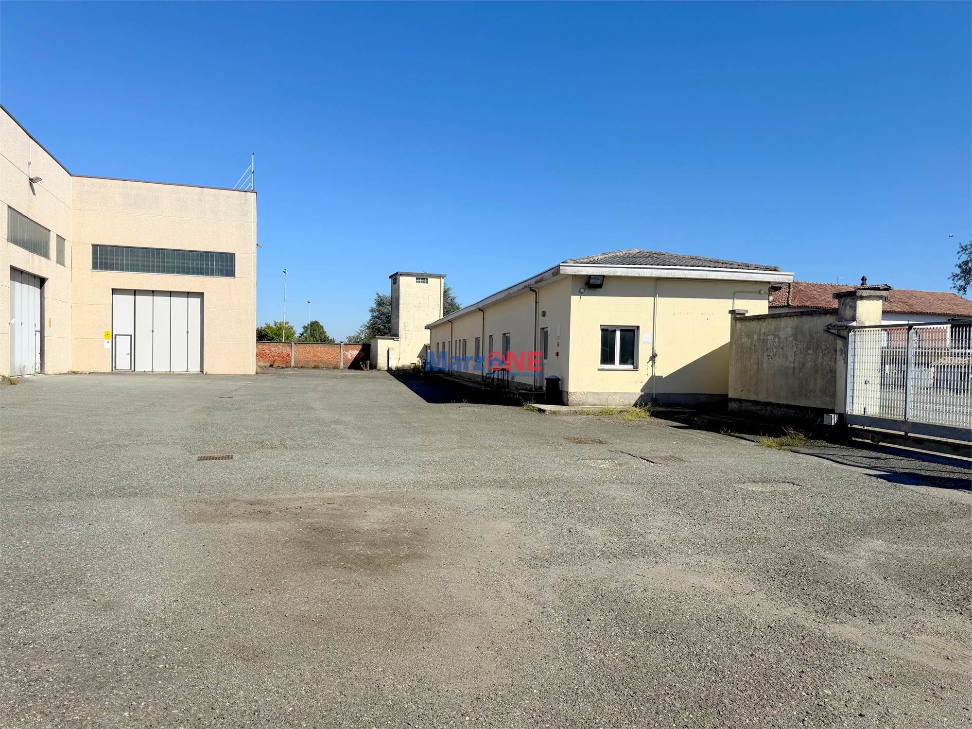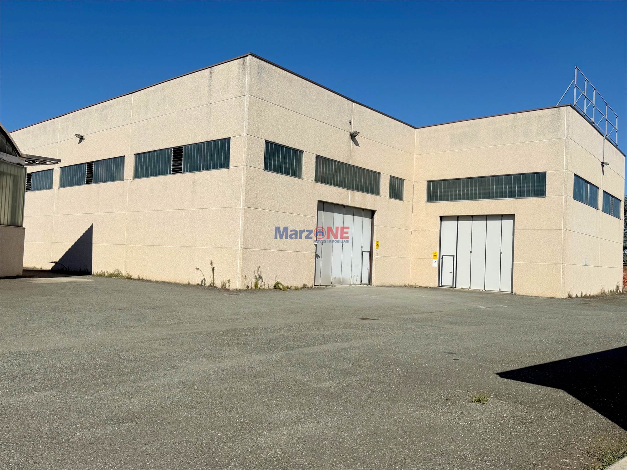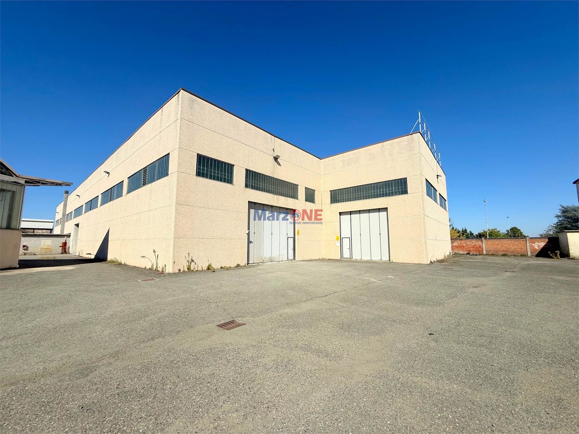 La palazzina uffici è di circa 250 mq., sviluppata su due livelli fuori terra, ospita gli spazi direzionali e amministrativi, oltre a un alloggio per il custode (posto al piano primo) e un box auto (posto al piano terreno).