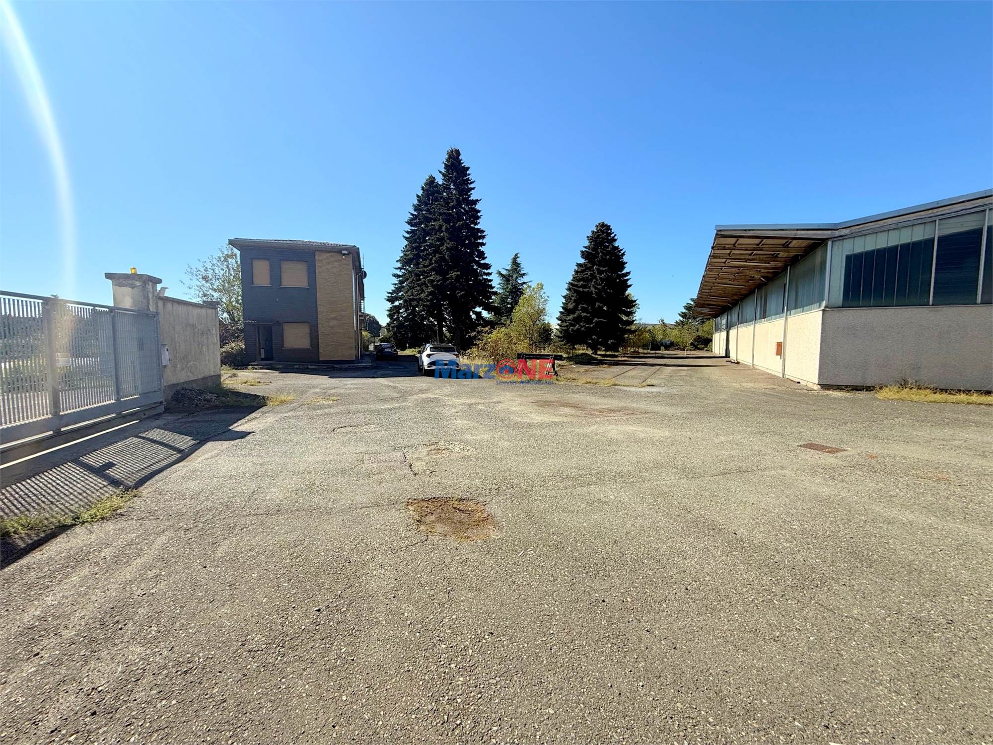 Il sedime complessivo è prevalentemente bitumato e destinato alla viabilità interna e alla movimentazione, ma è completato da una significativa area permeabile trattata a verde e arricchita da alberature, contribuendo al miglioramento ambientale del lotto.