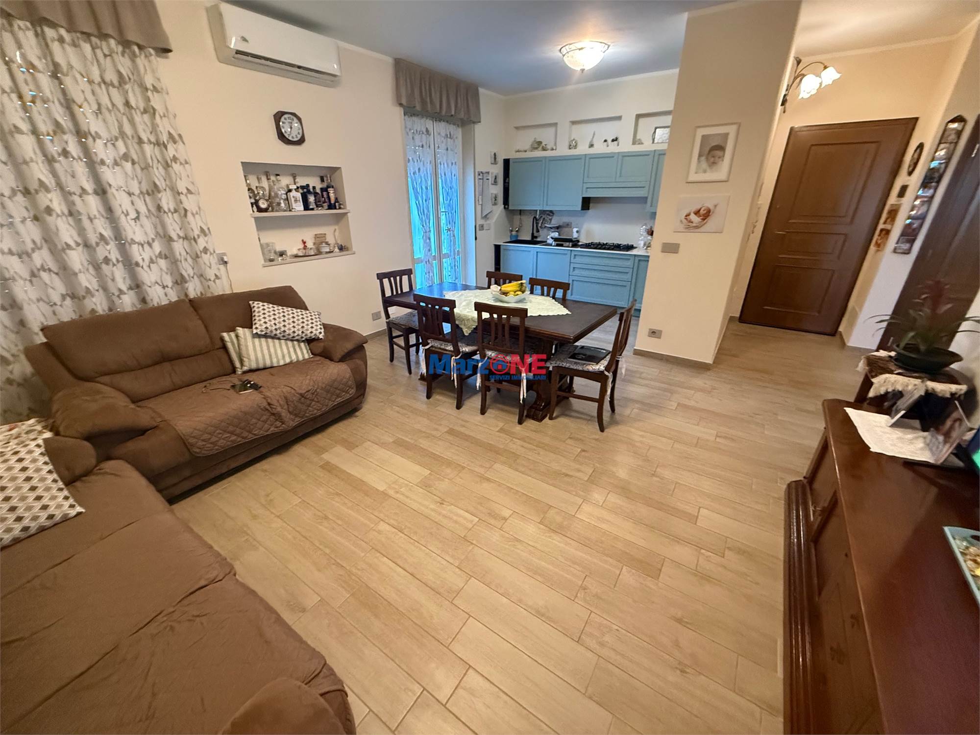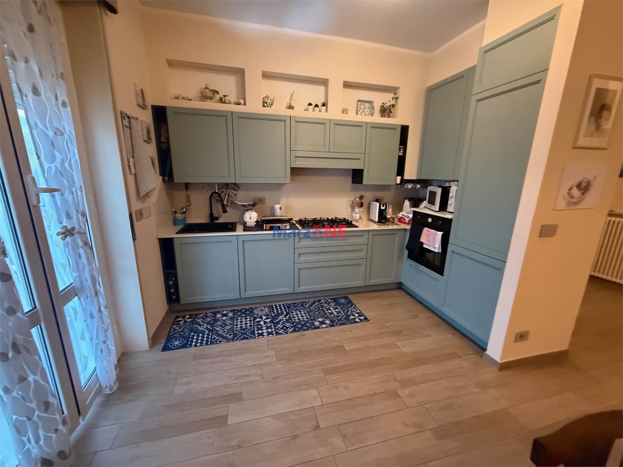 L'appartamento vanta anche un grazioso orticello e un parcheggio privato, perfetti per godersi momenti di relax all'aria aperta. La zona circostante offre un'area verde, un parco giochi per i più piccoli e la comodità di avere a portata di mano mezzi pubblici, scuole, supermercato, farmacia, bar, panetteria, ristoranti e un asilo per i più piccoli.
